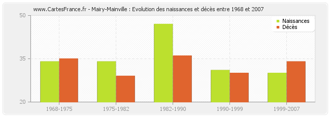 Mairy-Mainville : évolution des naissances et décès de 1968 à 2007