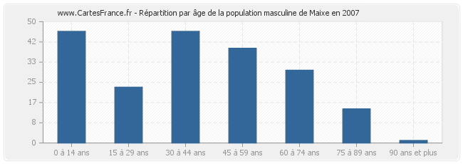 - Hommes de 0 à 14 ans habitant Maixe : 46