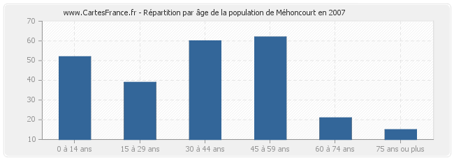 - Population de Méhoncourt de 45 à 59 ans : 62 habitants
