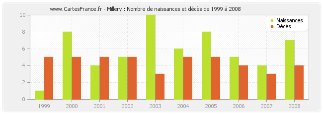 - De 1999 à 2007 : 47 naissances et 37 décès
