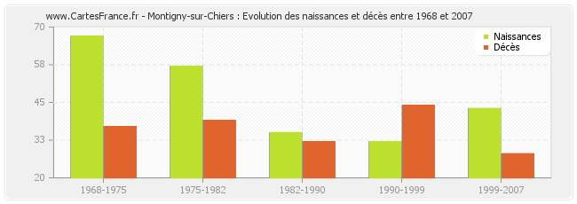 Montigny-sur-Chiers : évolution des naissances et décès de 1968 à 2007