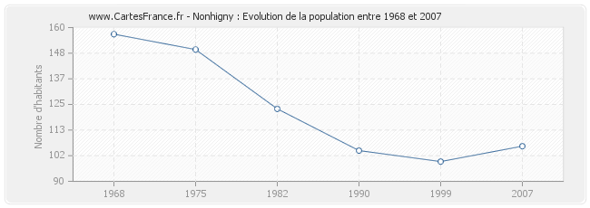 La population de Nonhigny était de 106 habitants en 2007, 99 habitants en 1999, 104 habitants en 1990, 123 habitants en 1982, 150 habitants en 1975 et 157 habitants en 1968.