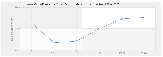 La population d'Othe était de 33 habitants en 2007, 32 habitants en 1999, 25 habitants en 1990, 16 habitants en 1982, 15 habitants en 1975 et 29 habitants en 1968.