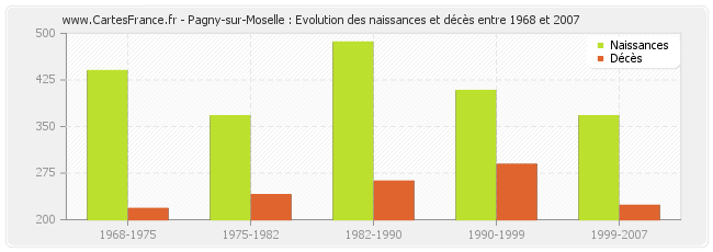 Pagny-sur-Moselle : évolution des naissances et décès de 1968 à 2007