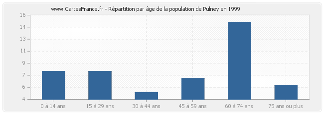 - Population de Pulney de 60 à 74 ans : 15 habitants