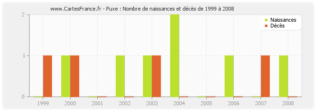 Puxe : évolution des naissances et décès de 1968 à 2007