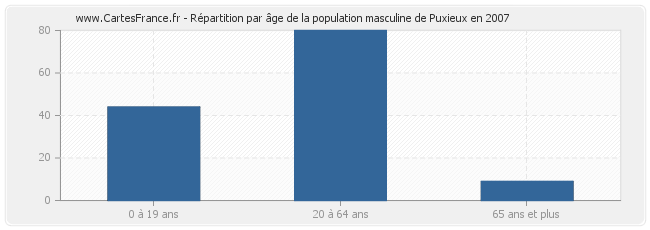 Répartition de la population masculine de Puxieux par âge en 2007 :