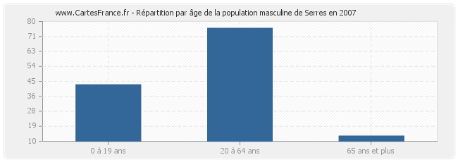 - Hommes de 20 à 64 ans habitant Serres : 76