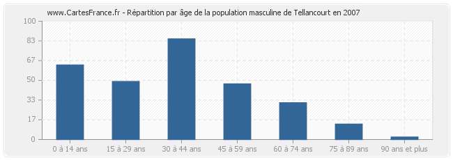 - Hommes de 0 à 14 ans habitant Tellancourt : 63