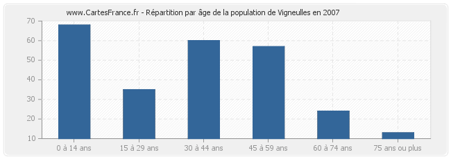 - Population de Vigneulles de 0 à 14 ans : 68 habitants
