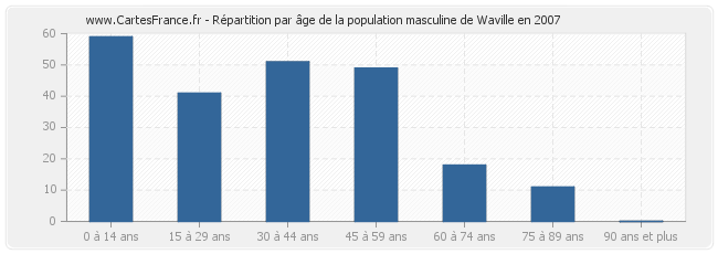 - Hommes de 0 à 14 ans habitant Waville : 59