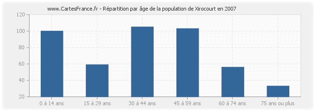 - Population de Xirocourt de 30 à 44 ans : 105 habitants