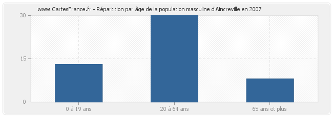 - Hommes de 20 à 64 ans habitant Aincreville : 30
