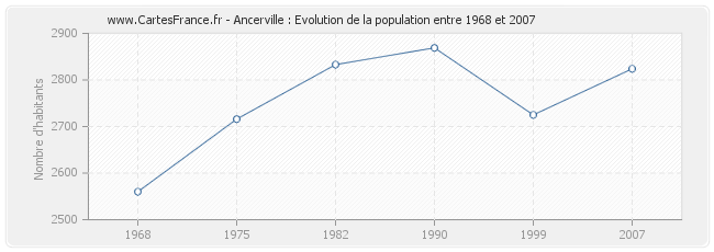 - Population d'Ancerville en 2007 : 2 824 habitants
