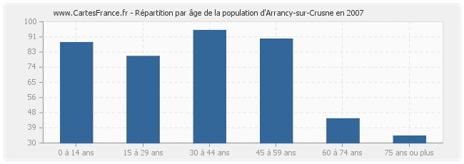 - Population d'Arrancy-sur-Crusne de 75 ans ou plus : 34 habitants