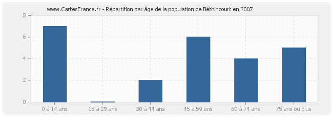 - Population de Béthincourt de 0 à 14 ans : 7 habitants