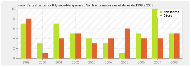 Billy-sous-Mangiennes : naissances et décès de 1999 à 2008