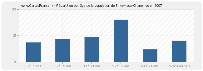 - Population de Brixey-aux-Chanoines de 30 à 44 ans : 14 habitants