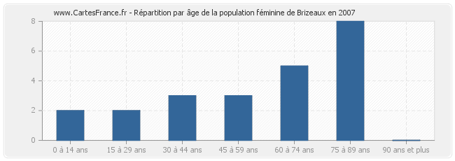 Répartition de la population féminine de Brizeaux par âge en 2007 :