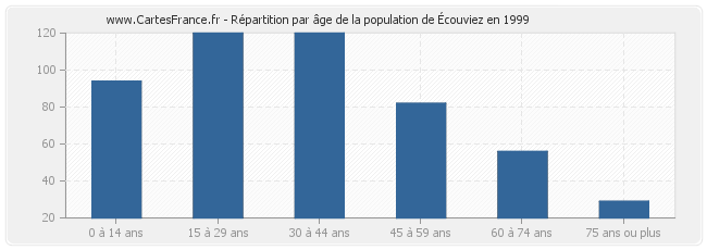 - Population d'Écouviez de 15 à 29 ans : 120 habitants