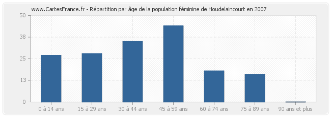 Répartition de la population féminine de Houdelaincourt par âge en 2007 :