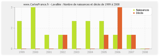 - Lavallée en 2008 : 0 naissances et 0 décès