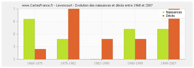 Levoncourt : évolution des naissances et décès de 1968 à 2007