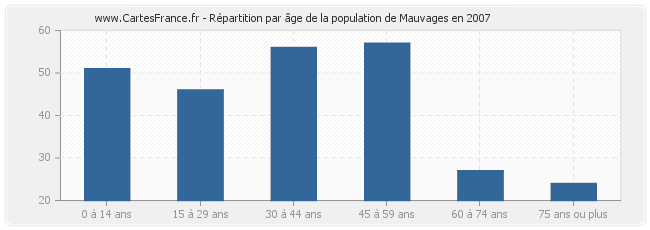 - Population de Mauvages de 45 à 59 ans : 25 habitants