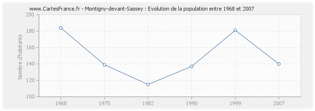 Historique de la population de Montigny-devant-Sassey de 1968 à 2007 :