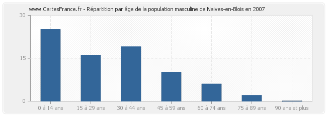 Répartition de la population masculine de Naives-en-Blois par âge en 2007 :