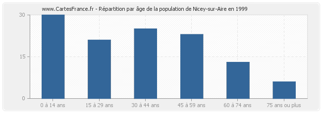 - Population de Nicey-sur-Aire de 0 à 14 ans : 30 habitants