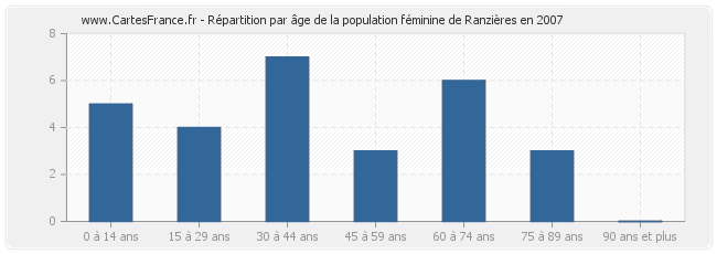 Répartition de la population féminine de Ranzières par âge en 2007 :