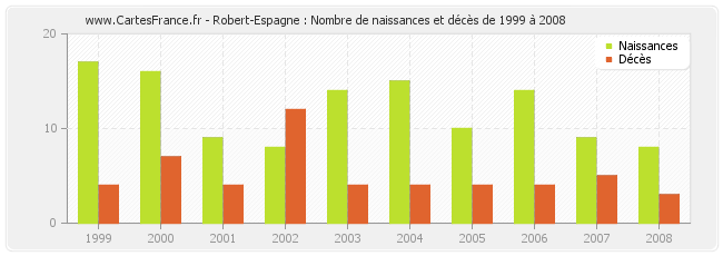 - Robert-Espagne en 2008 : 8 naissances et 3 décès