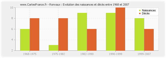 Ronvaux : évolution des naissances et décès de 1968 à 2007