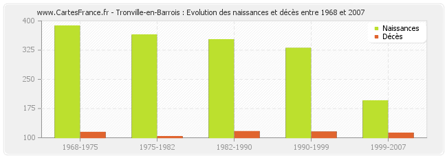 Tronville-en-Barrois : évolution des naissances et décès de 1968 à 2007