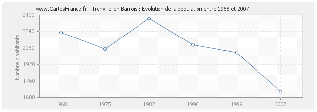 La population de Tronville-en-Barrois était de 1 658 habitants en 2007, 2 036 habitants en 1999, 2 111 habitants en 1990, 2 364 habitants en 1982, 2 071 habitants en 1975 et 2 229 habitants en 1968.