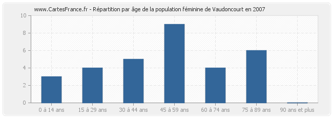 Répartition de la population féminine de Vaudoncourt par âge en 2007 :