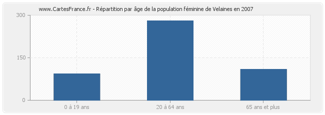 Répartition de la population féminine de Velaines par âge en 2007 :