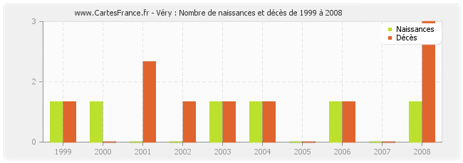 La population de Véry était de 88 habitants en 2007, 102 habitants en 1999, 112 habitants en 1990, 138 habitants en 1982, 162 habitants en 1975 et 167 habitants en 1968.