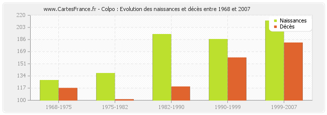 Colpo : évolution des naissances et décès de 1968 à 2007