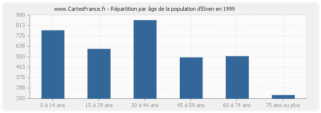 - Population d'Elven de 0 à 14 ans : 769 habitants