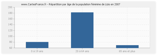 Répartition de la population féminine de Lizio par âge en 2007 :