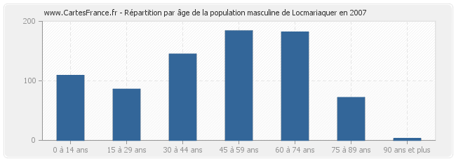 Répartition de la population masculine de Locmariaquer par âge en 2007 :