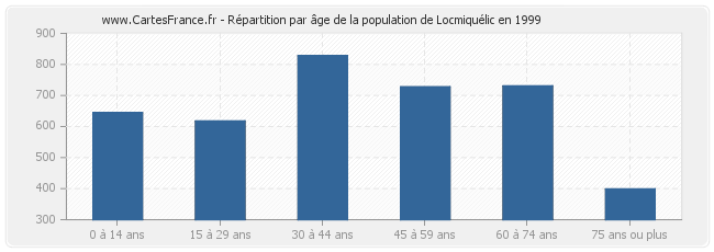 Répartition de la population de Locmiquélic par âge en 1999 :