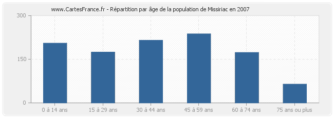 - Population de Missiriac de 45 à 59 ans : 237 habitants
