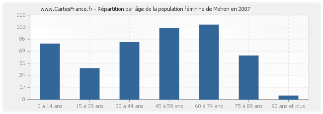 Répartition de la population féminine de Mohon par âge en 2007 :