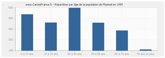 - Population de Ploemel de 30 à 44 ans : 497 habitants