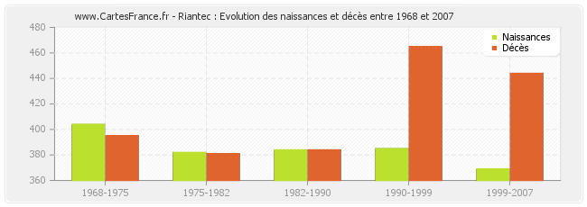 Riantec : évolution des naissances et décès de 1968 à 2007