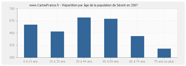 - Population de Sérent de 30 à 44 ans : 608 habitants