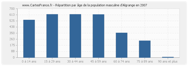 - Hommes de 15 à 29 ans habitant Algrange : 619
